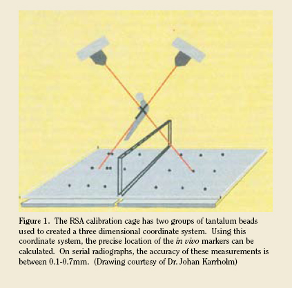 RSA, relative motion as little as 0.1-0.7 mm between two rigid