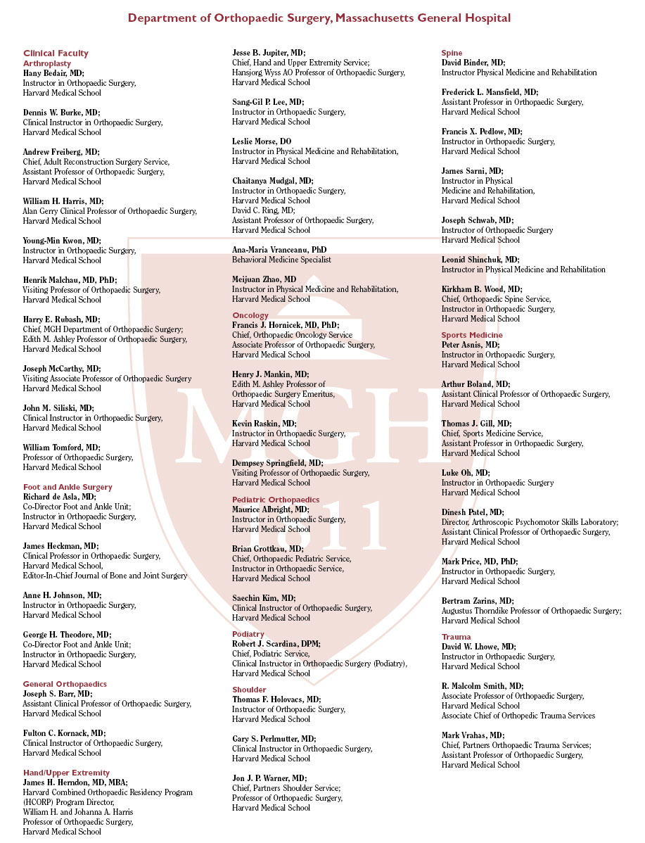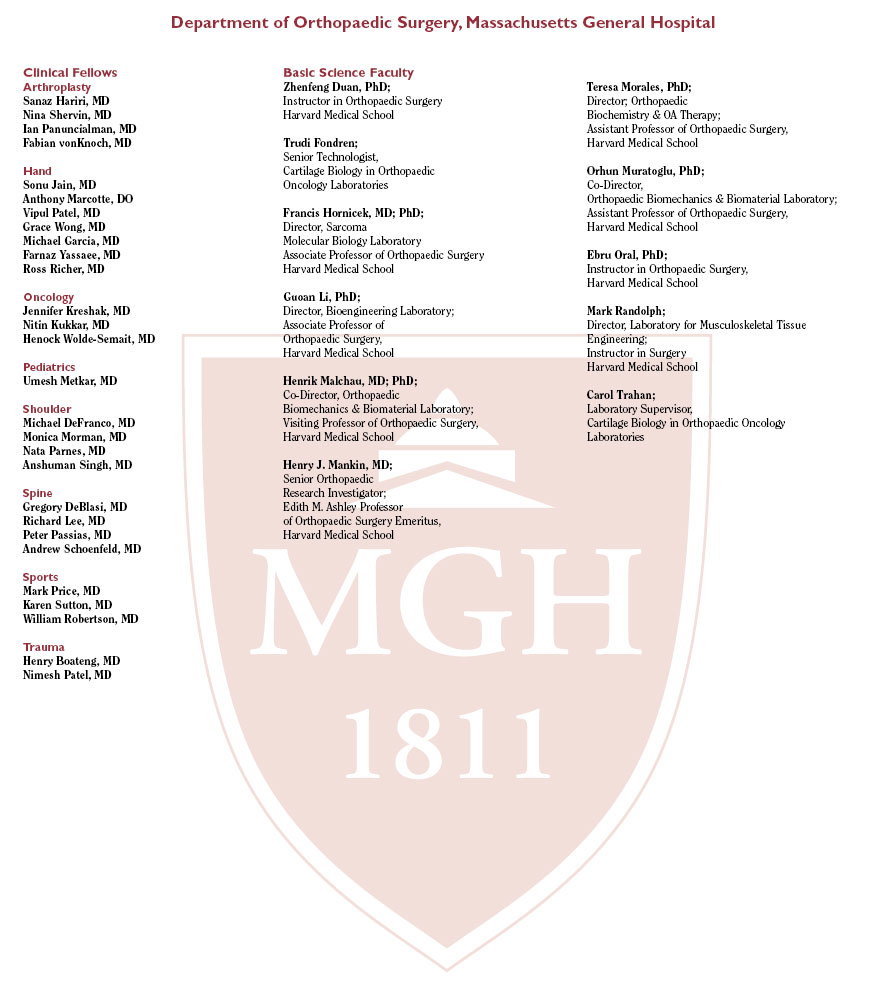 CHAIRMAN, DEPARTMENT OF ORTHOPAEDIC SURGERY, MASSACHUSETTS GENERAL HOSPITAL, BOSTON, MA"