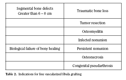 Presently, the indications for free vascularized fibula grafting